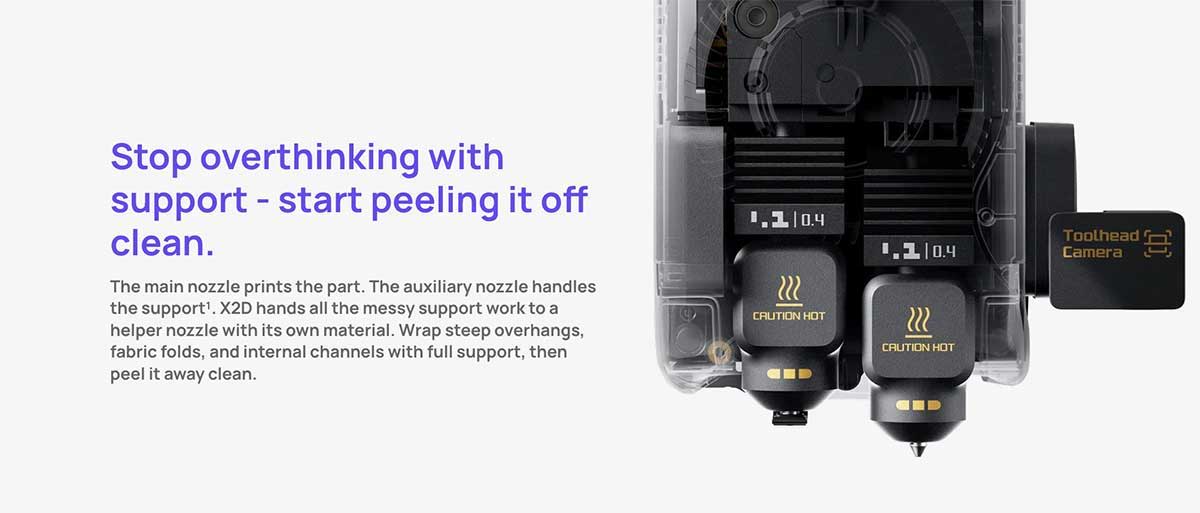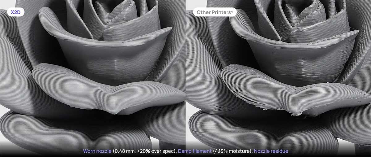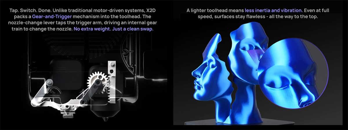 X2D's dual-nozzle system completed over 1 million switch cycles in life-cycle testing, maintaining smooth and consistent motion throughout. Built for years of dependable use.