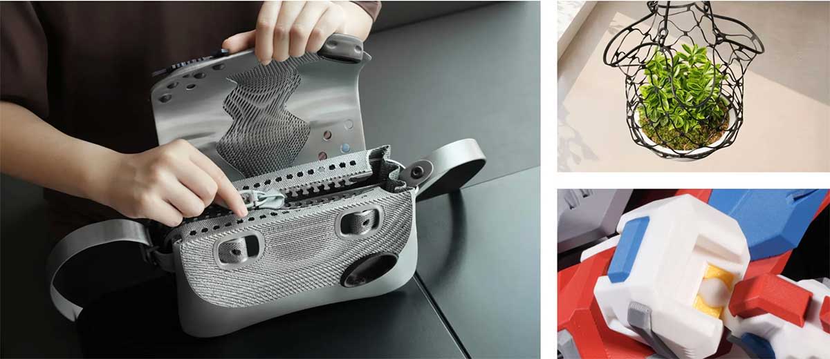 Fuse PLA and TPU in a single model. Create bags, grips, and bumpers that come off the bed ready to use.