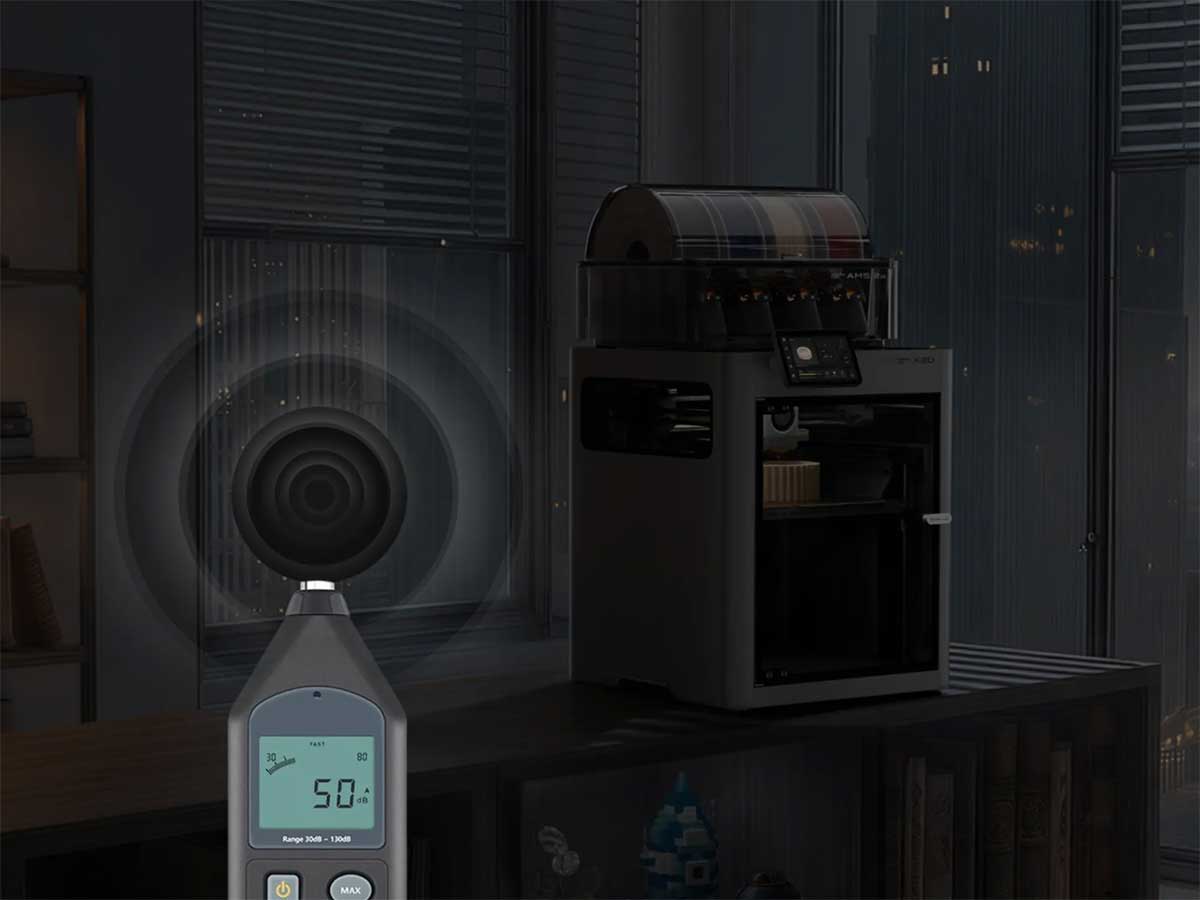 Active Motor Noise Canceling and a noise-optimized air duct keep the X2D below 50 dB under typical conditions. Quiet enough for overnight printing.