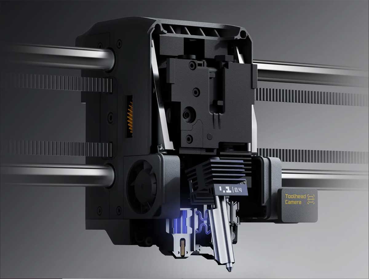 Before printing, the AI Liveview Camera and Toolhead Camera scan the build plate for foreign objects and verify plate placement. During printing, they watch for spaghetti, nozzle clumping, and purge-chute jams in real time - pausing the job before it wastes hours of time and filament.