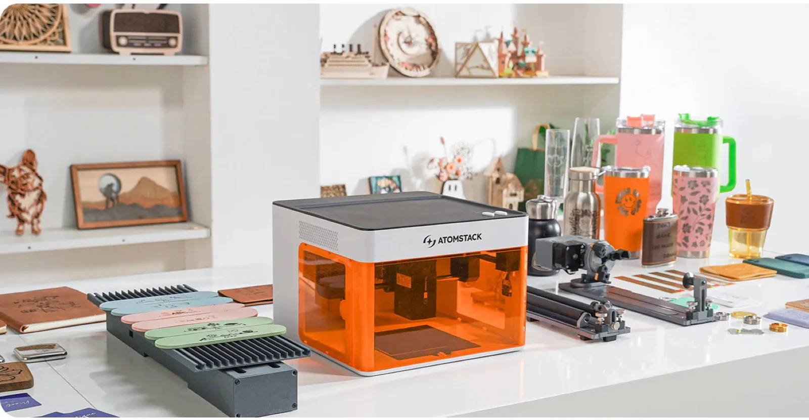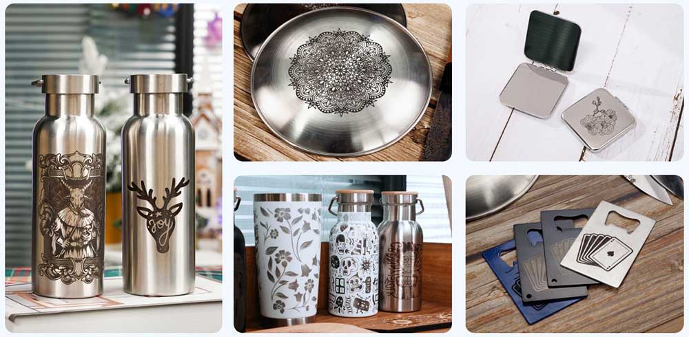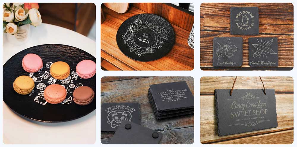 Add custom designs to spoons, cutting boards, tumblers, coasters, cups, paper, necklaces, and more.