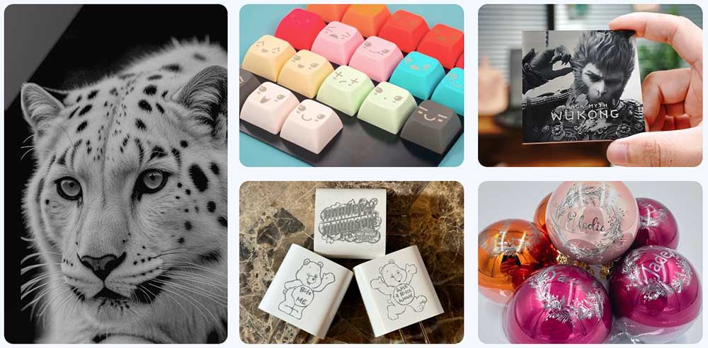 | Supported Materials | Wood, Bamboo, Paper, Leather, Cardboard, Cork, Rock, Felt, Fabric, MDF, Coated Metal, Some Dark Opaque Acrylic, etc. | 5W Diode Laser: |